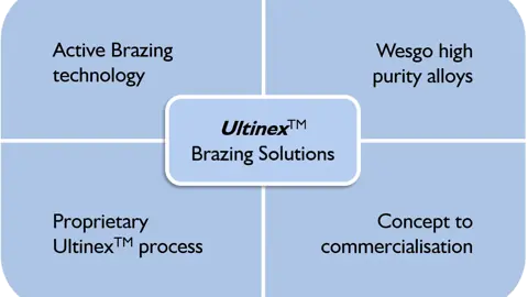 Ultinex® active brazing is the next generation of active brazing from the people who pioneered its commercialisation. Our vertical integration from alloy formulations to finished forms results in complete versatility in joint fit up challenges. Through a series of DOE’s we have developed a proprietary process which contributes directly to improving product performance and opens up design possibilities due to a near infinite number of material combinations.